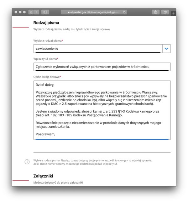 8. Podaj treść pisma. Możesz użyć szablonu generowanego na stronie wysyłka;