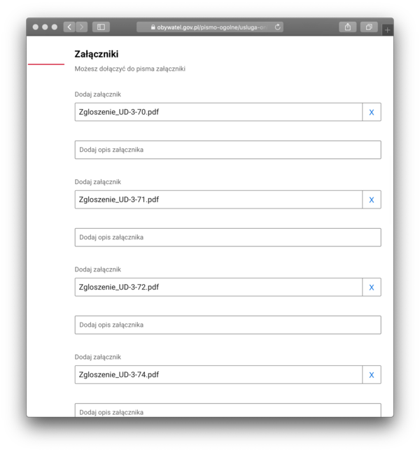 9. Dodaj załączniki z wnioskami (lub jeden połączony plik ze strony wysyłka);