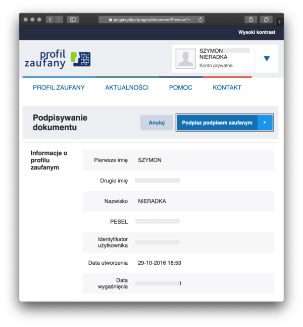 13. Na kolejnej stronie wybierz Podpisz profilem zaufanym;