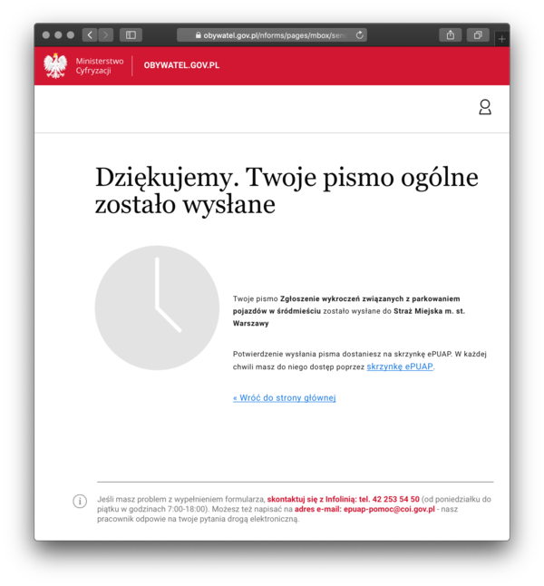 15. Jeśli wszystko się udało, twoim oczom powinna ukazać się strona z komunikatem Dziękujemy. Twoje pismo ogólne zostało wysłane;