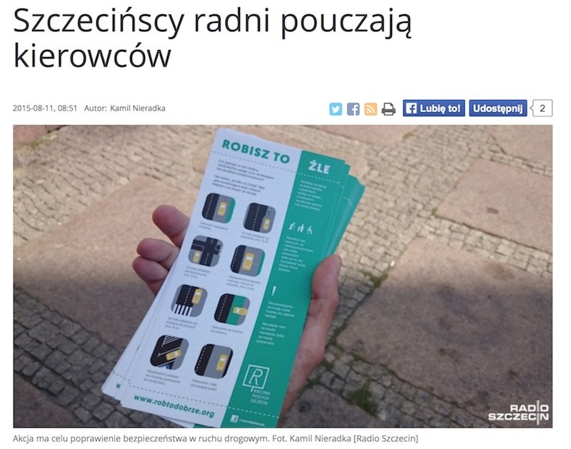 W 2015 w Szczecinie z inicjatywy samozwańczego Rzecznika Pieszych w Szczecinie i kawiarni Stojaki powstała akcja Rób to dobrze.